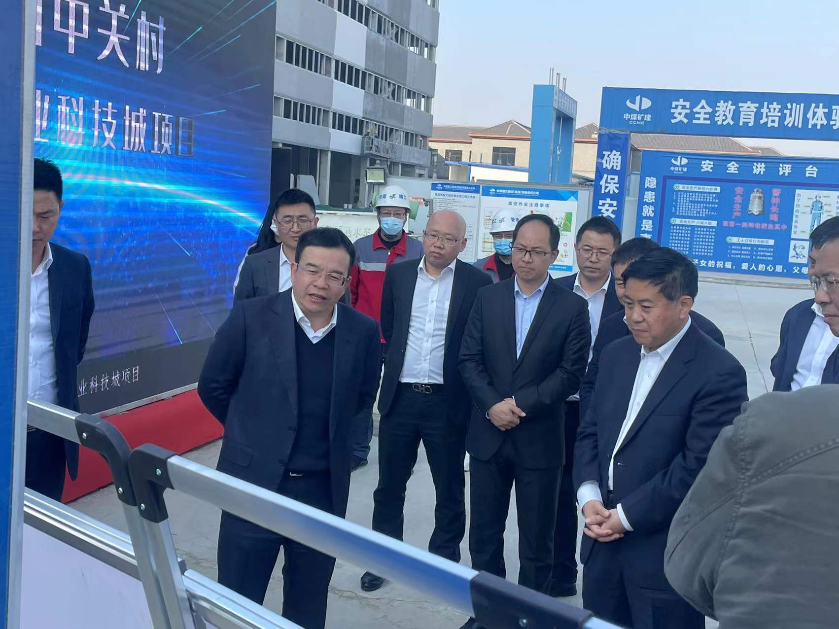 2021年12月22日南陽市委副書記、市長王智慧,南陽高新區黨工委書記周天龍,以及其他市政府及區委區政府相關領導一行15人,親臨由我單位承監的南陽中關村創新創業科技城一期項目現場,實地察看了工程推進情況,對該項目的工程進展和工程質量予以肯定,并提出更高的要求。