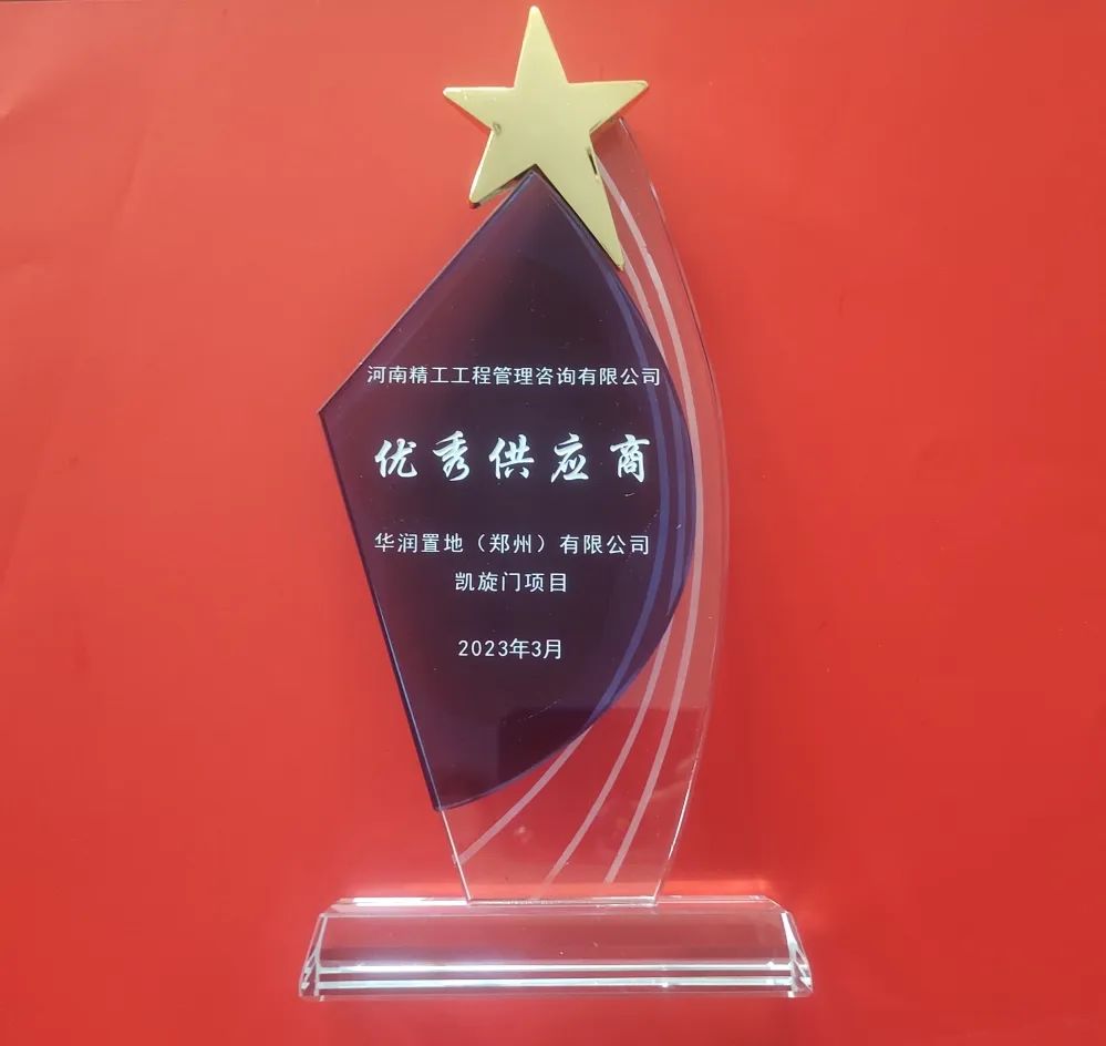 2023年4月17日,河南精工工程管理咨詢有限公司繼獲得華潤(rùn)置地(鄭州)有限公司凱旋門項(xiàng)目部頒發(fā)2022年度“優(yōu)秀供應(yīng)商”后,時(shí)隔101天再度榮獲2023年度“優(yōu)秀供應(yīng)商”稱號(hào)。