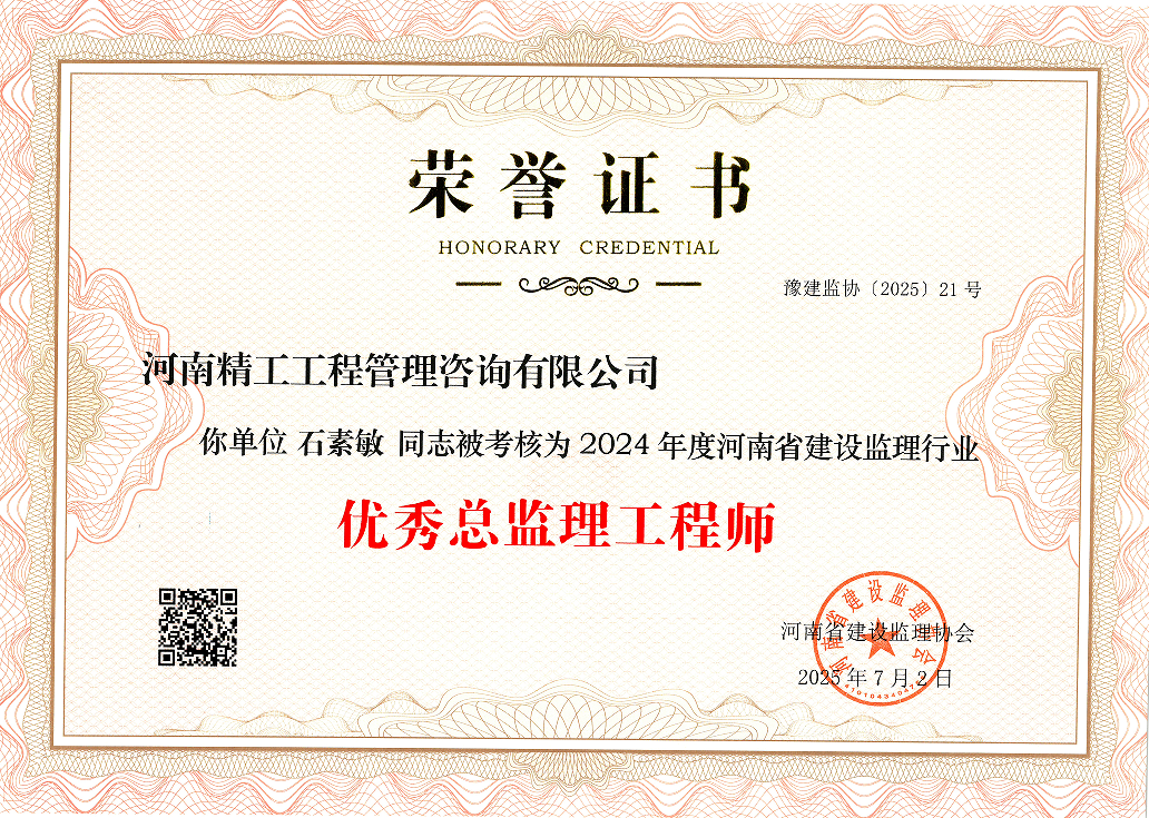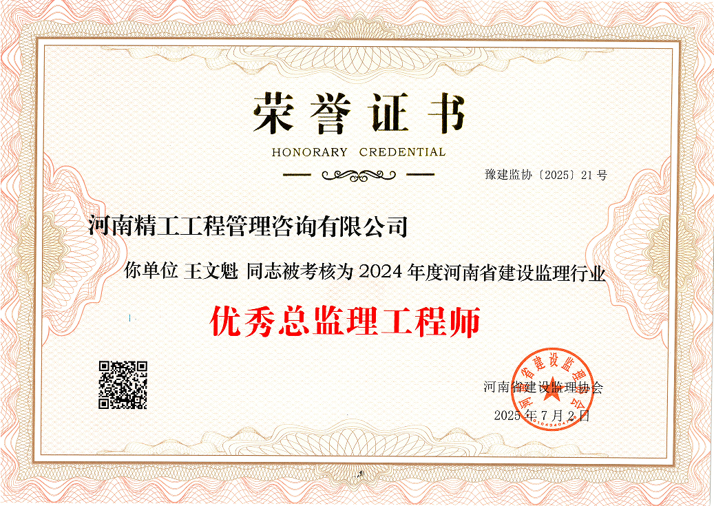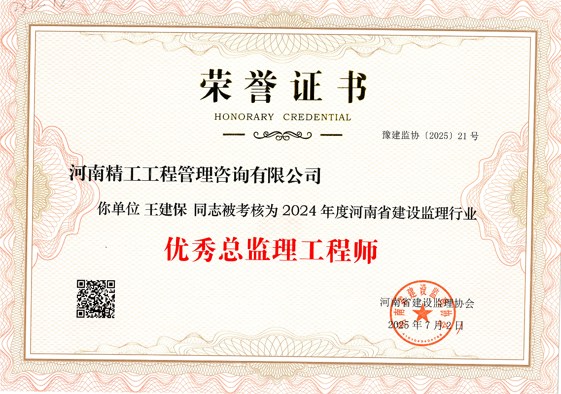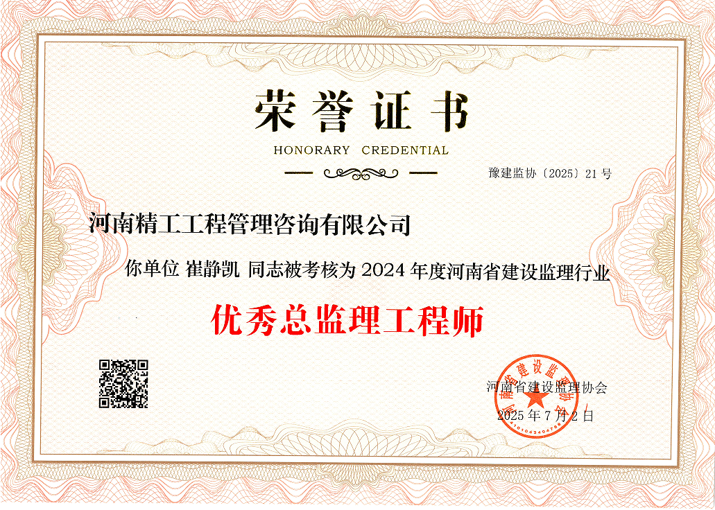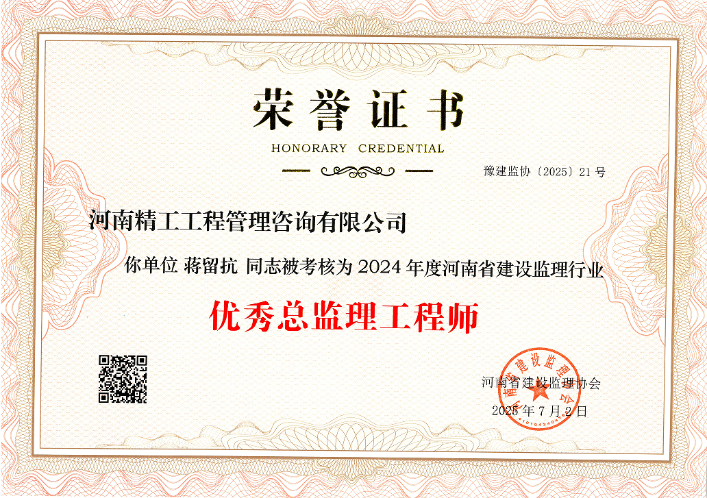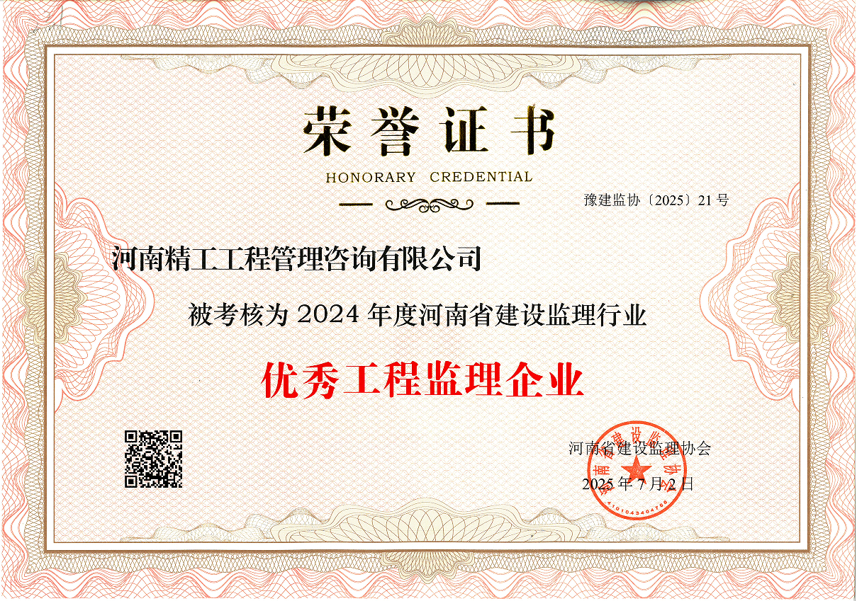 近日,河南省建設(shè)監(jiān)理協(xié)會(huì)正式公布2024年度會(huì)員單位考核結(jié)果。經(jīng)協(xié)會(huì)全面、嚴(yán)格的綜合評估,河南精工工程管理咨詢有限公司憑借卓越的綜合實(shí)力與突出的行業(yè)貢獻(xiàn),成功獲評“2024年度河南省建設(shè)監(jiān)理行業(yè)優(yōu)秀工程監(jiān)理企業(yè)”稱號!