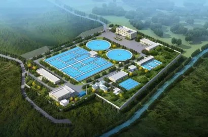 該工程采用“生物處理+深度處理”相結合的工藝,出廠水質執行一級A標準。工程建設內容包括粗格柵及進水泵房(提升泵站)、細格柵及旋流沉砂池、生物池配水配泥井、A2/O生物池、二沉池及配水井、高效沉淀池、轉筒濾池、接觸池、鼓風機房及變配電間、加氯加藥間、污泥泵站、貯泥池、污泥濃縮脫水機房、綜合辦公樓(含維修間、倉庫、機修車庫等)。